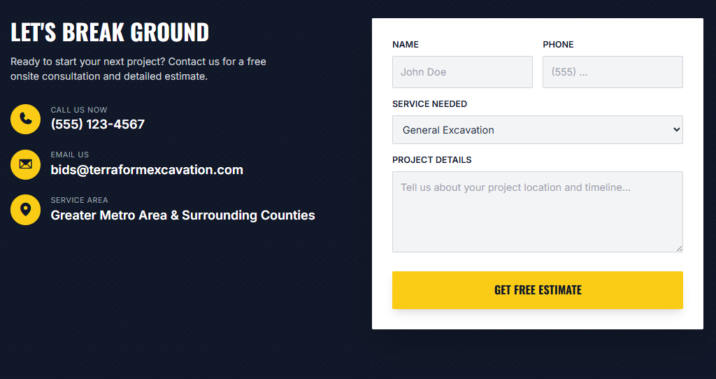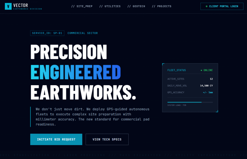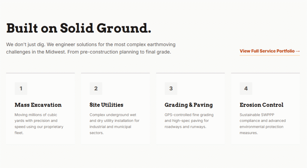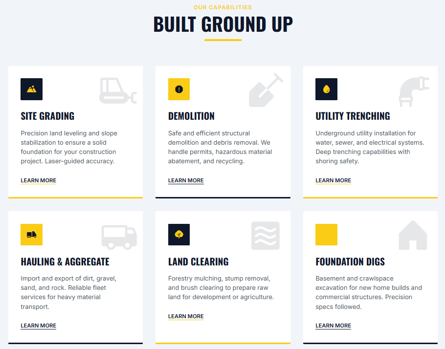 Prove Your Reliability: In earthmoving, hitting the schedule is everything. Your digital presence must signal safety, competence, and on-time delivery.
